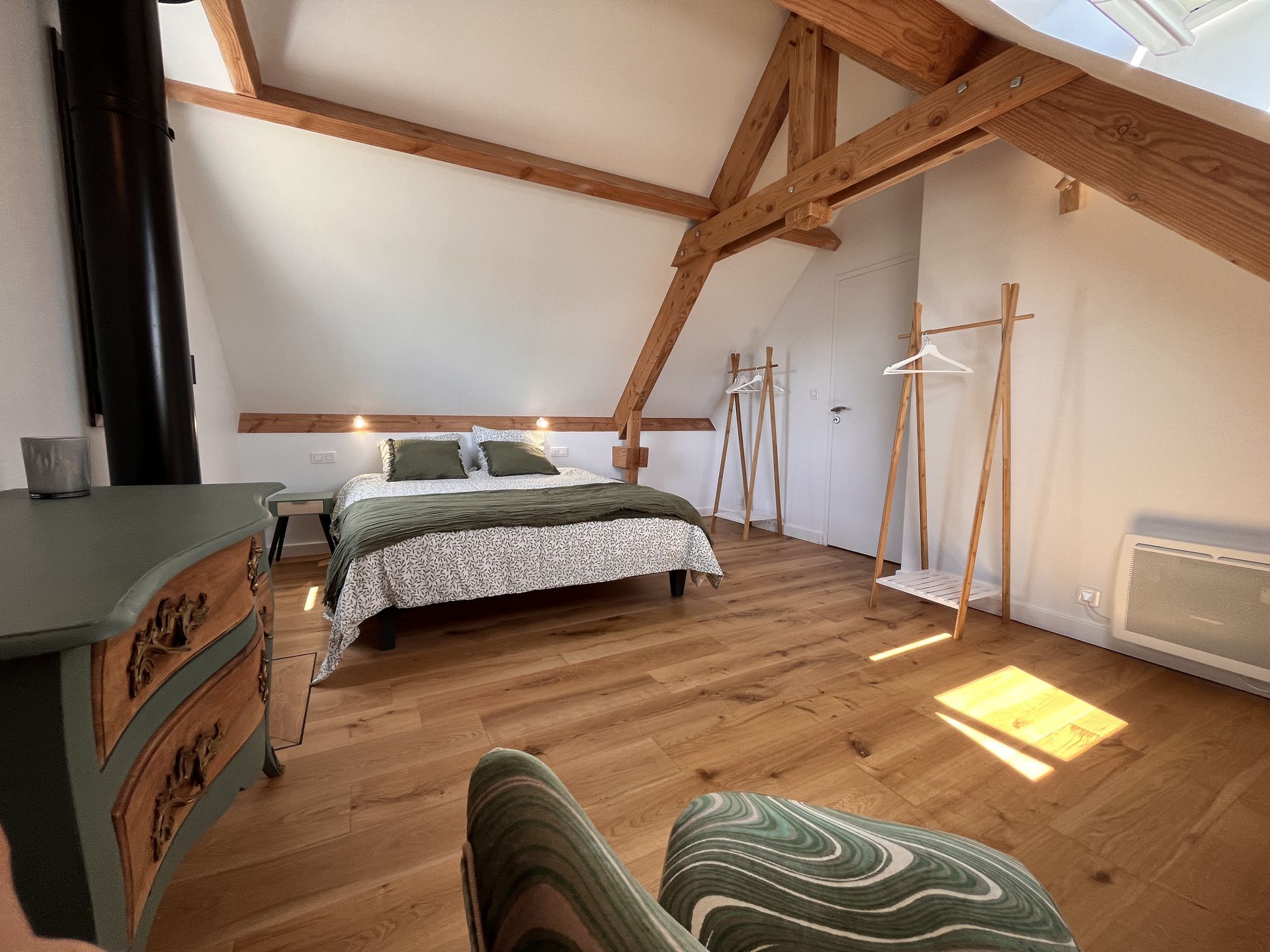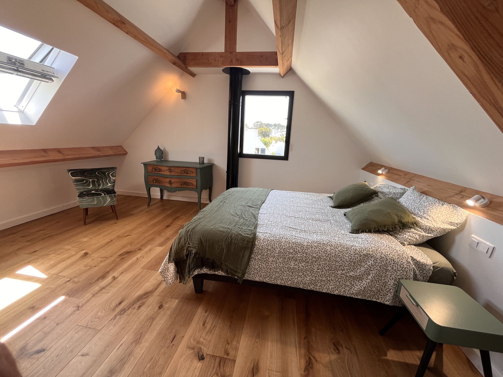 - Une chambre (13.5 M²) avec un lit de 140 x 190 cm.
