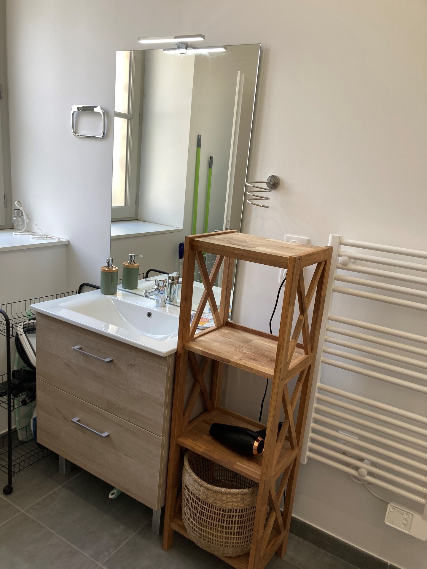 - Une salle d'eau (7.8 m²) avec une douche, un lavabo, un WC et un sèche cheveux.