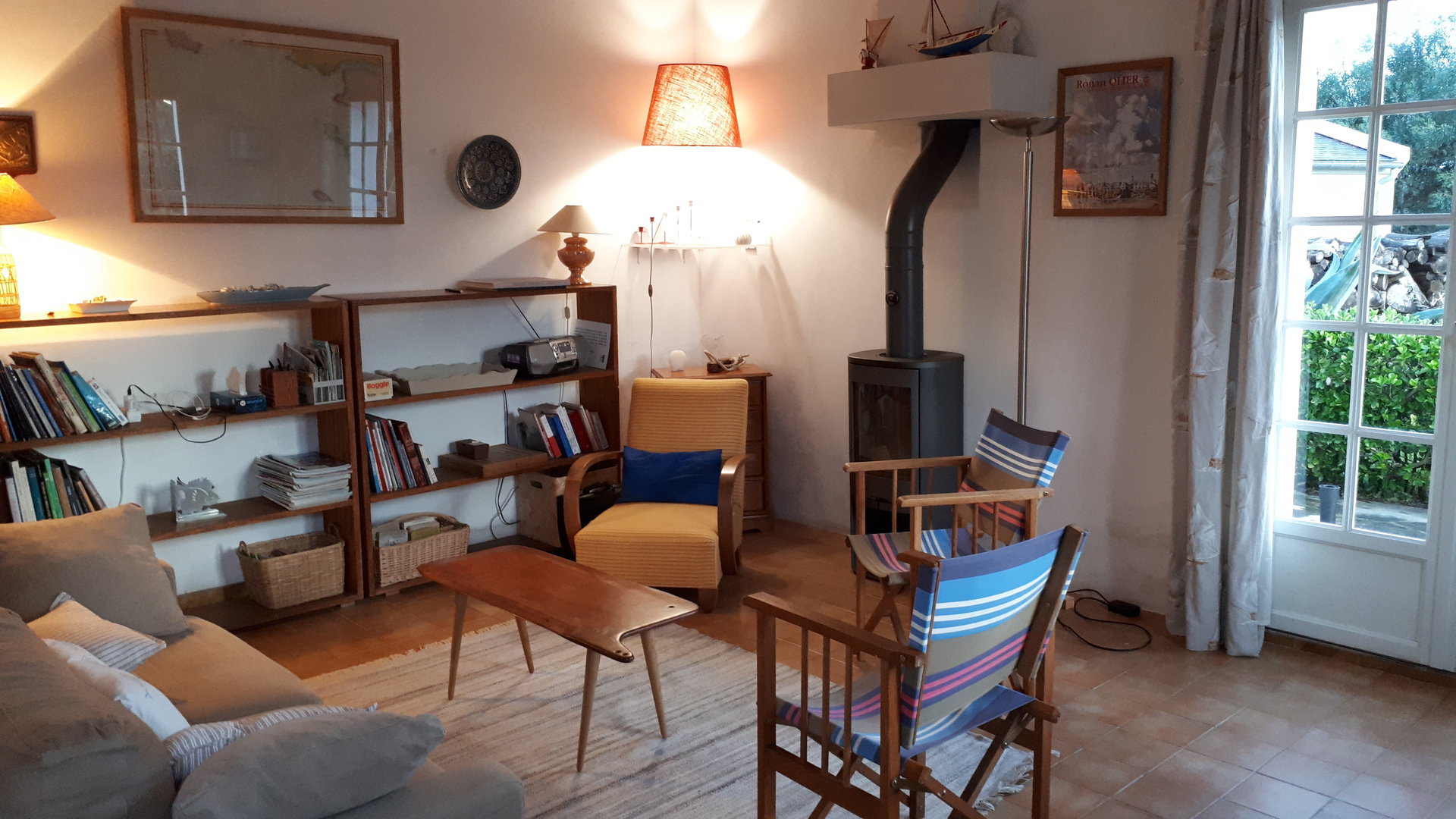 - Une pièce de séjour (24 M²) avec canapé convertible (en 150 X 200 cm), table et chaises de salle à manger et un poêle.